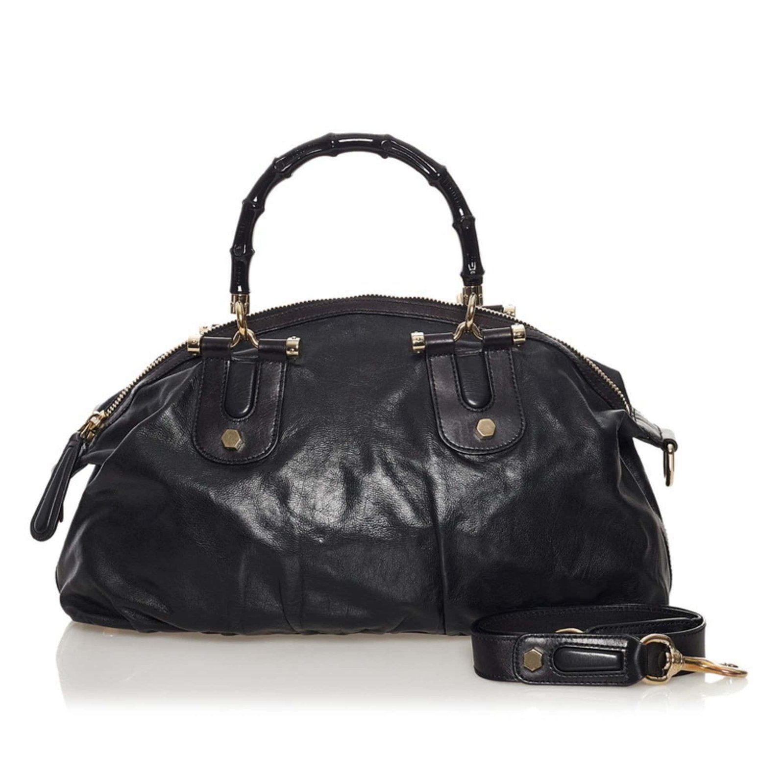 Gucci bamboo handbag shoulder bag 2way 189867 black leather ladies GUCCI