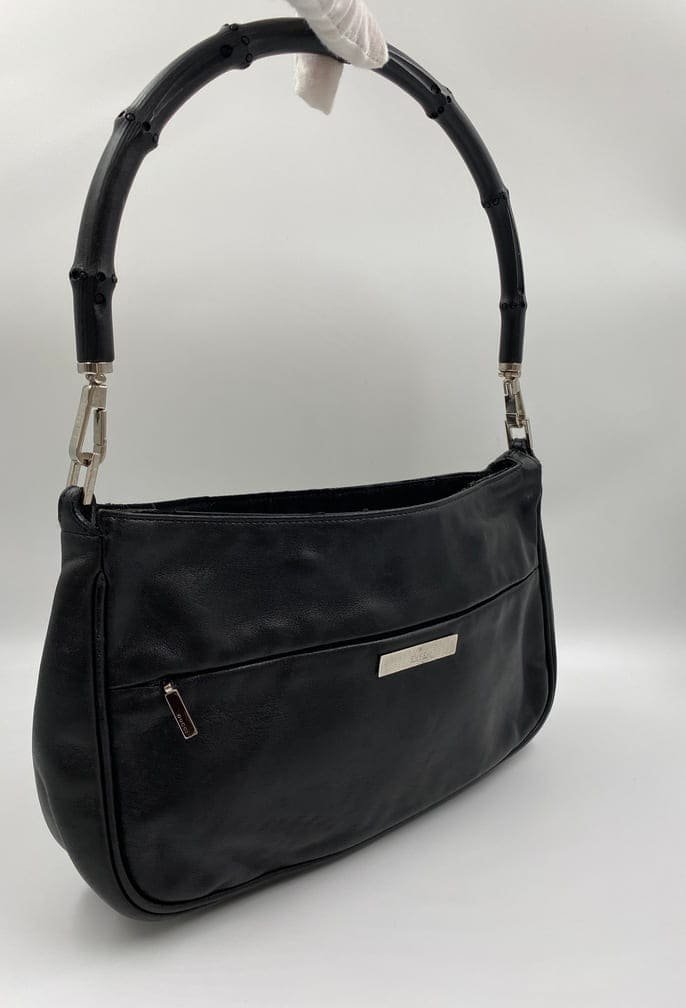 A timeless 90’s vintage Gucci shoulder bag with branded silver hardware and the iconic bamboo top handle.