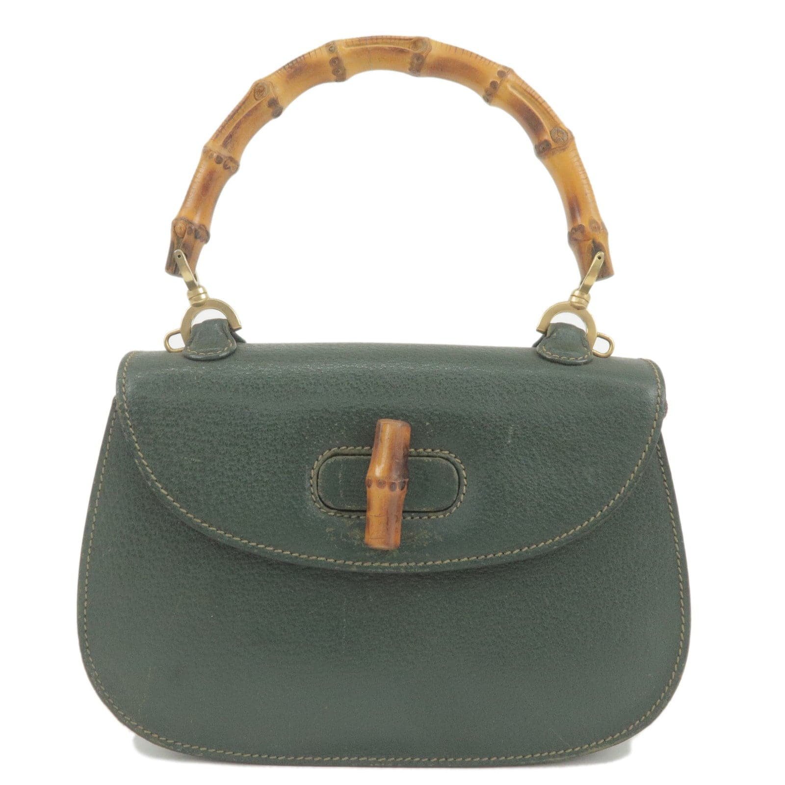 GUCCI Bamboo Leather Hand Bag Purse Green 000.1014.0188 | AlmaBagz