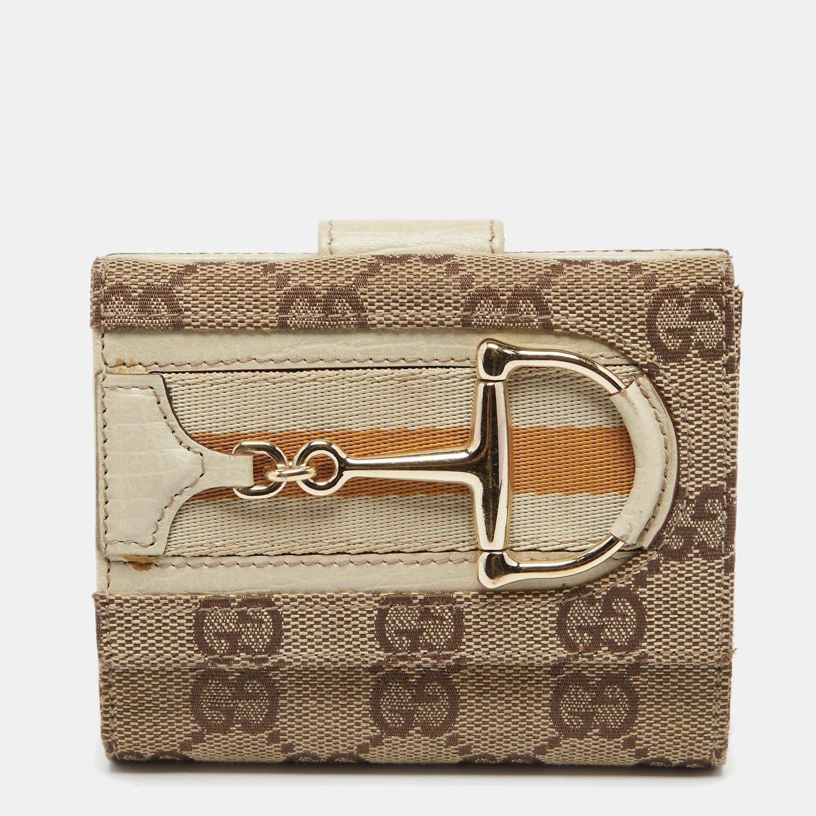 Gucci Beige GG Canvas and Leather Web Horsebit Compact Wallet