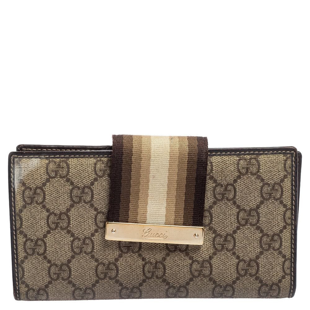 Gucci Beige GG Supreme Canvas Vintage Web Continental Wallet | AlmaBagz