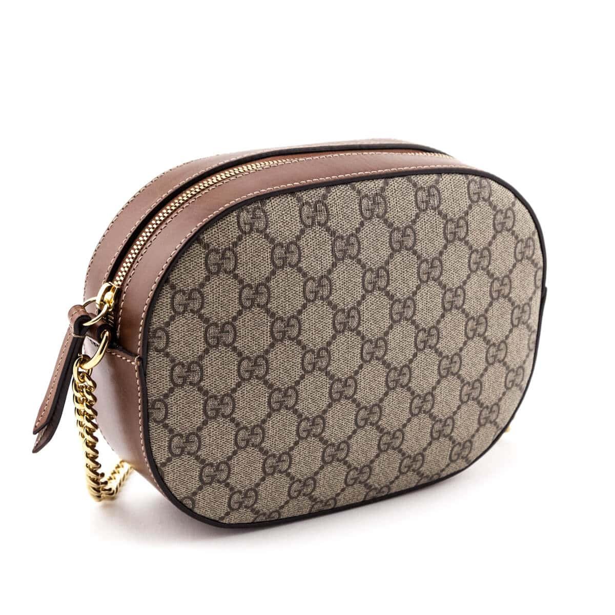 A classic Gucci combination with a retro-inspired feel, this Gucci Beige GG Supreme Mini Chain Bag is a true collector’s item. Done in a beige coated canvas in the GG Supreme monogram print, this exceptional preBlara Bagsd Gucci handbag complements its neutral colorway with gold-tone hardware along the crossbody chain strap. Chocolate brown leather accents frame this Gucci bag, and present along the chain strap in a shoulder comfort pad. Beneath a top zip closure with a chocolate brown leather fringe zip pull, a brown microfiber lined open interior can be found, with one flat slip pocket for storage. This Gucci Beige GG Supreme Mini Chain Bag is both an easy neutral and a total standout in one covetable piece!