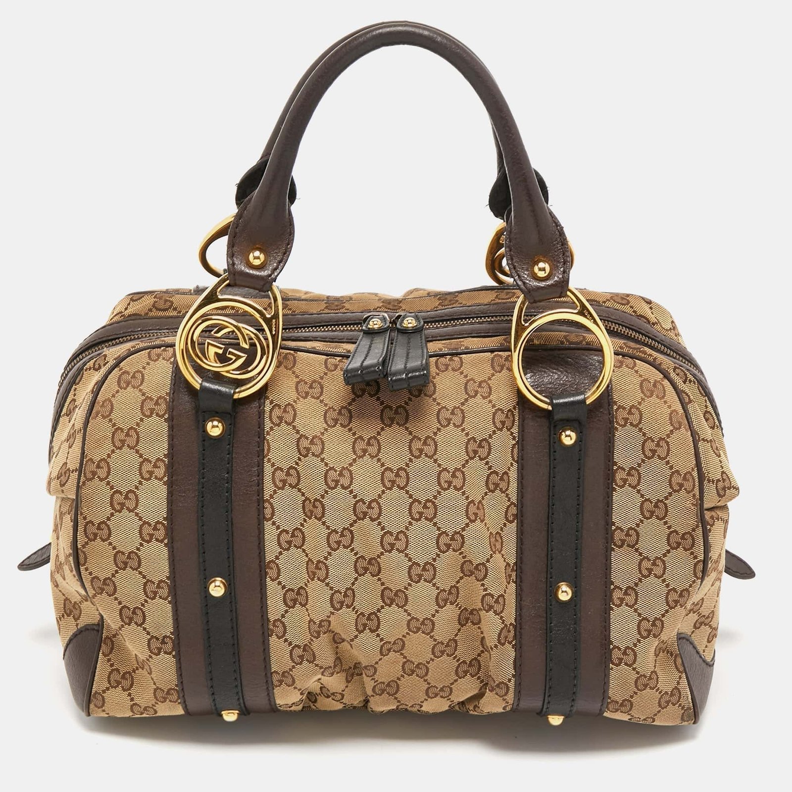 Gucci Beige/Brown Canvas and Leather Interlocking Boston Bag