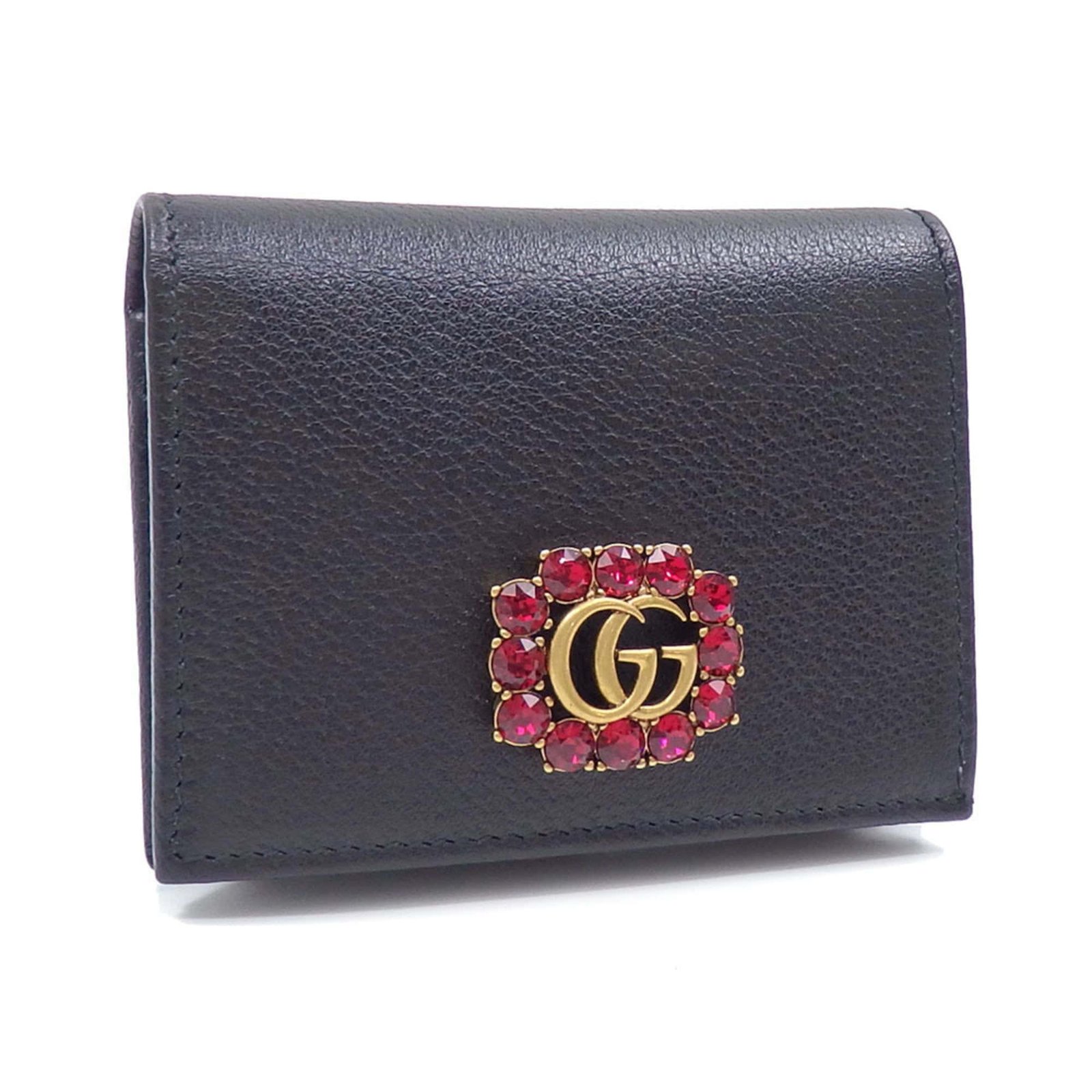 Gucci Bifold Wallet GG Marmont Women’s Black Leather 499783 Bijou Compact