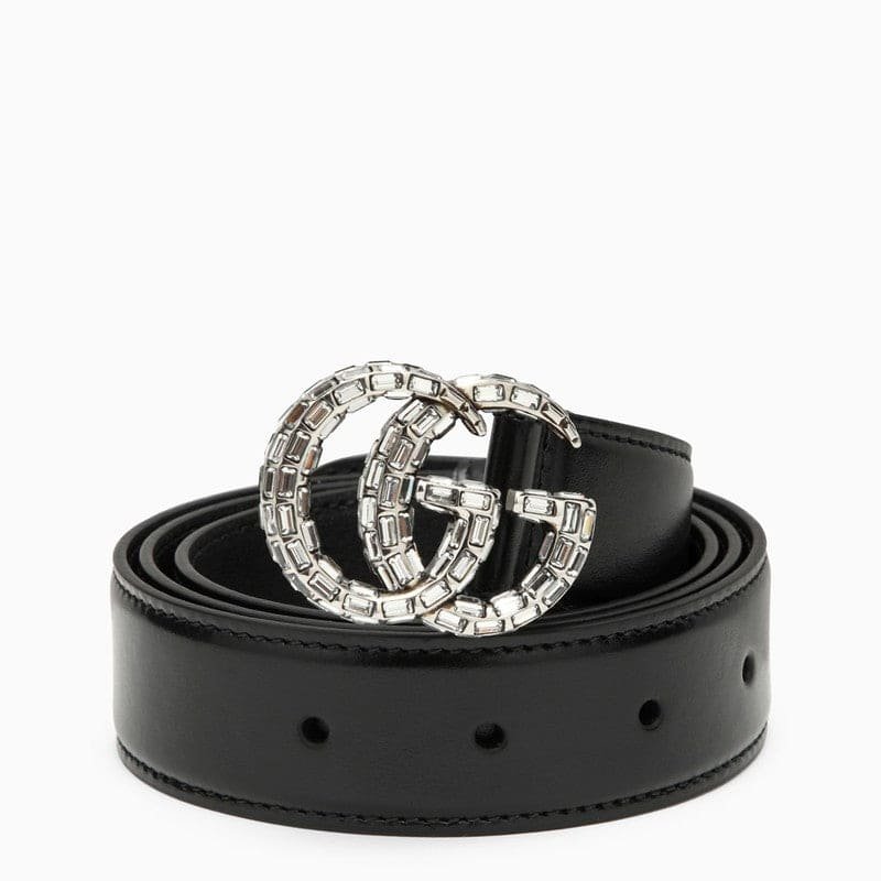 Gucci Black Belt With Double Gg Buckle With Crystals Women | AlmaBagz