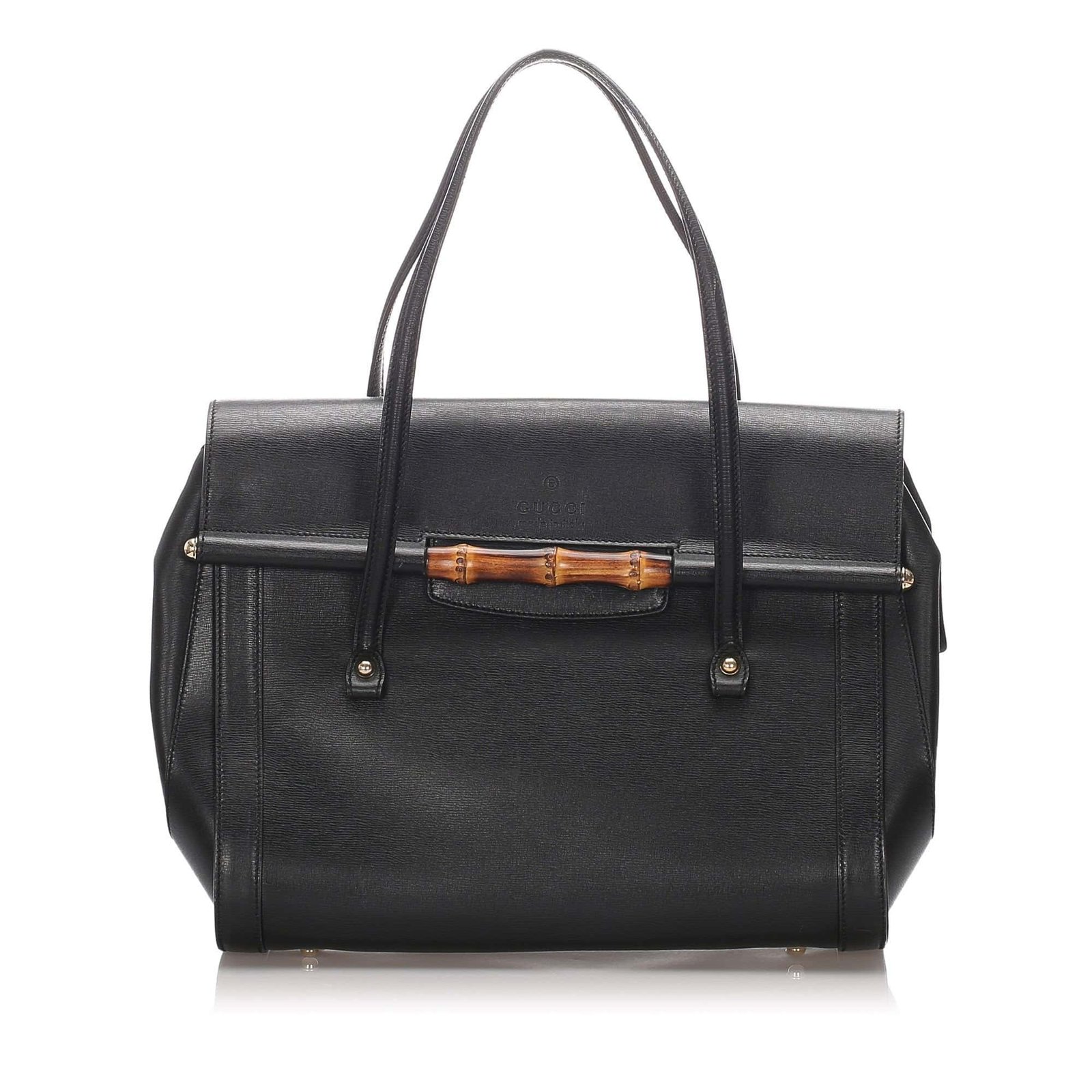 Gucci Black Calf Leather Bamboo Bullet Tote Bag Italy