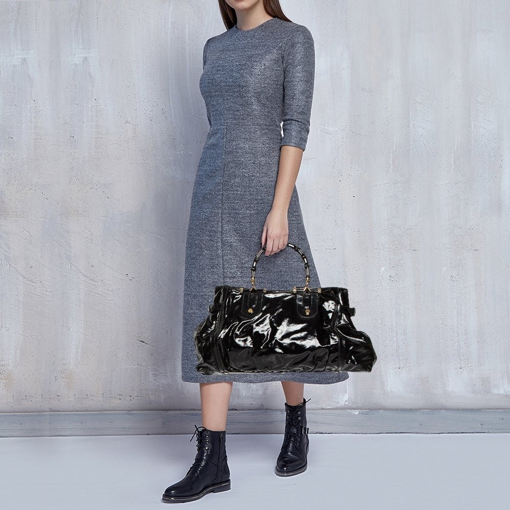 Gucci Black Coated Canvas and Leather Dialux Pop Bamboo Satchel | AlmaBagz