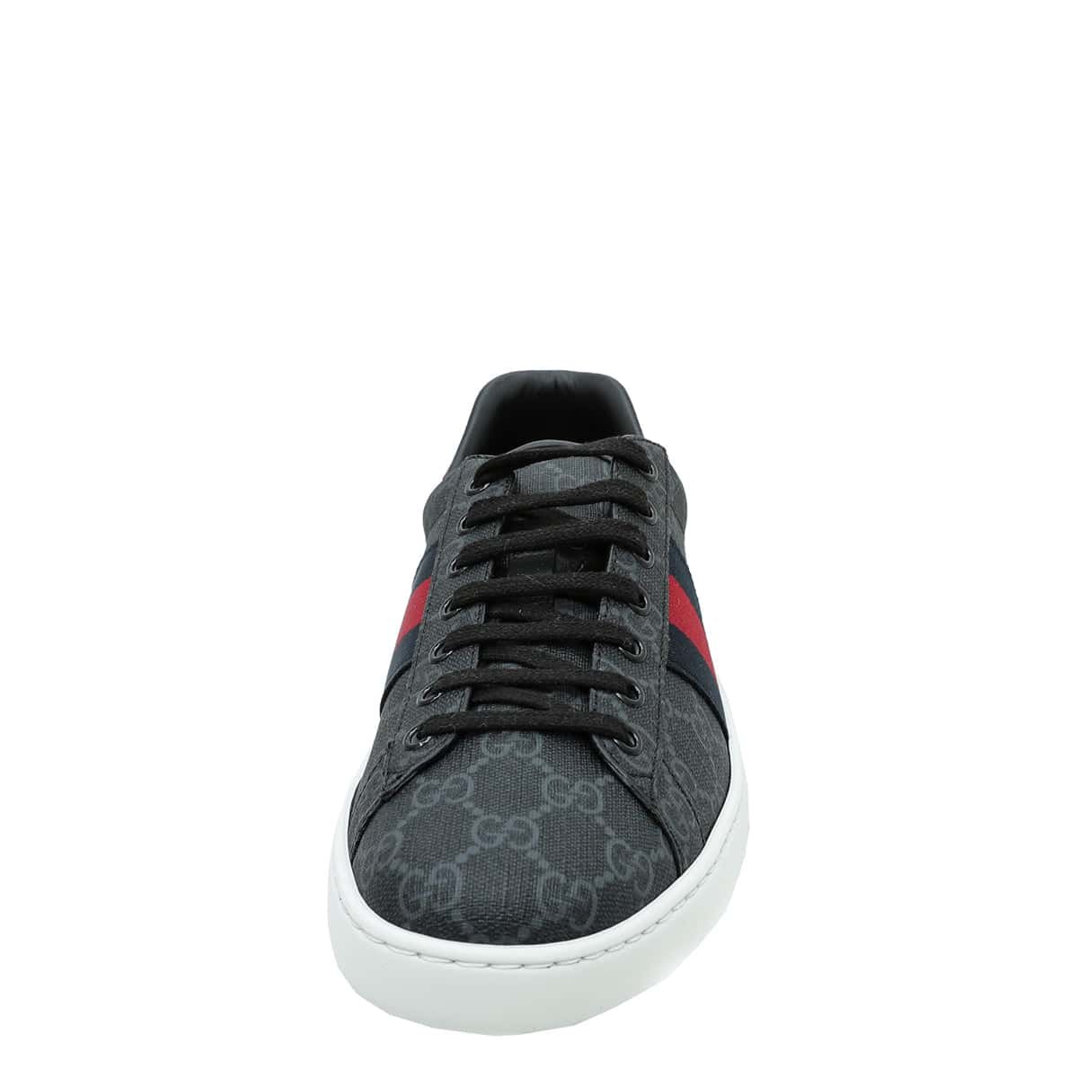 - Material: Black GG Supreme Canvas with Navy/Red Web and Red Snakeskin Leather Detail on The Heel of One Shoe and Blue on The Other