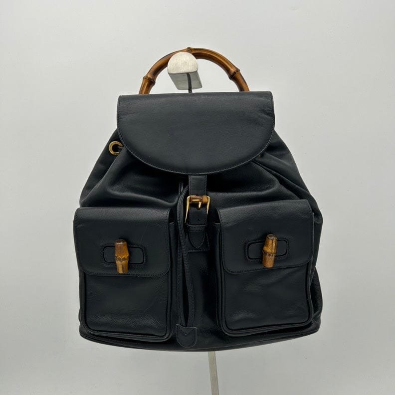 Invest in timeless elegance with this Gucci leather backpack. Crafted from premium leather and finished with bamboo and leather handles, this piece exudes sophistication. The black exterior and gold hardware offer a versatile style that pairs with any outfit, while the medium size ensures ample storage. Ideal for any occasion, this Gucci GG Marmont backpack is a modern classic. Don’t miss the chance to own a piece of luxury.