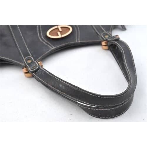 It has two handles, a top zip closure, and is a roomy satchel style. This is one of the more rare versions of the ‘Gucci satchel’ style and has a gorgeous high-end bohemian look. The bag is made of black, supple and soft leather. It has contrast stitching and brass, almost rose gold look hardware. It has a 1960’s boxy mod/bohemian look. I have lots of the other, more common, Gucci Accessory Collection, logo print versions of Gucci’s satchel in browns and blues for sale in other ads.