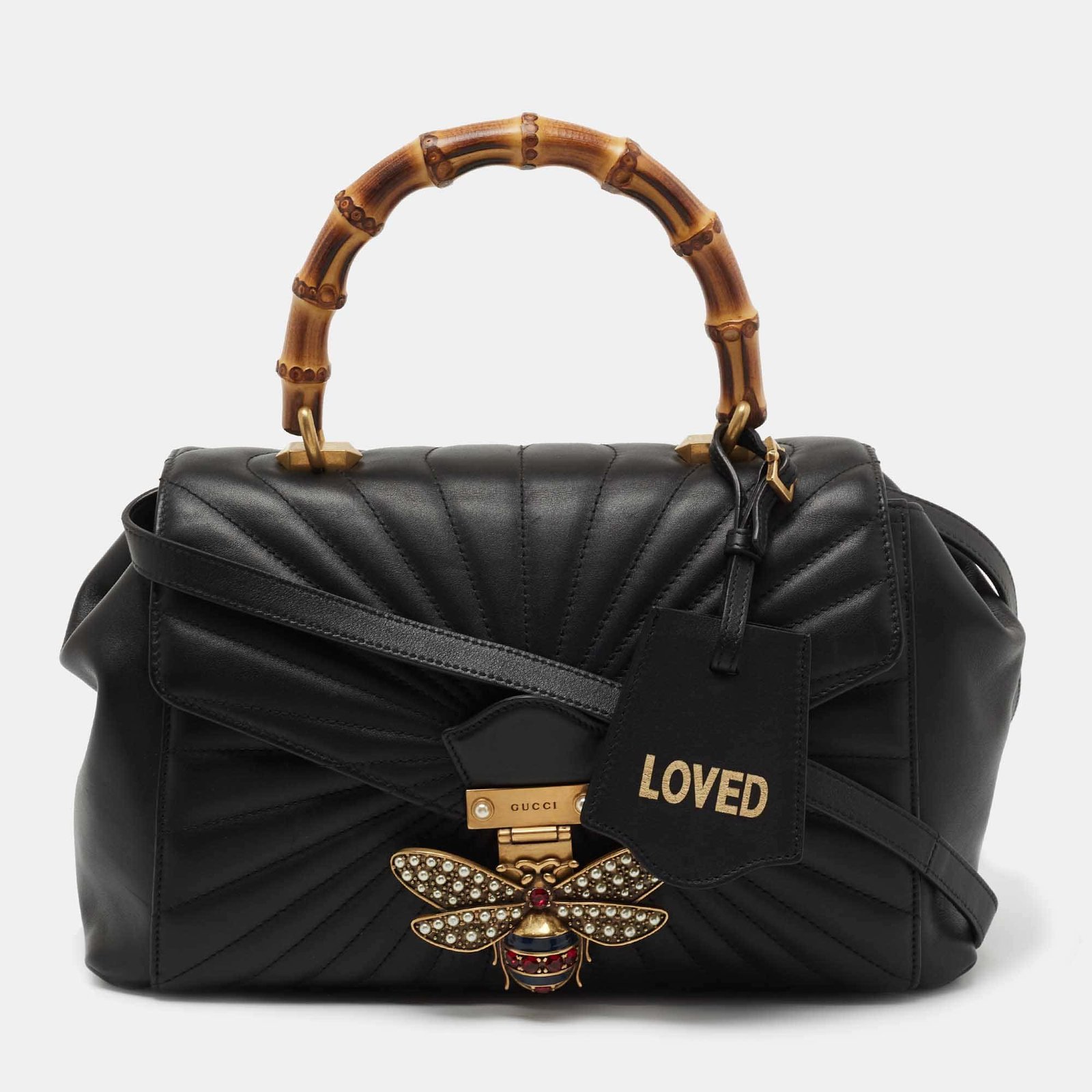 Gucci Black Quilted Leather Medium Queen Margaret Bamboo Top Handle Bag