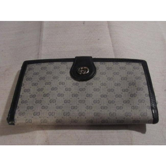 For sale is an extra large, Gucci, classic, navy blue, small G logo, leather/coated canvas, checkbook size, double sided wallet! It is a great looking, classic wallet with a lot of style! This is a hard style to find in the color and small logo!