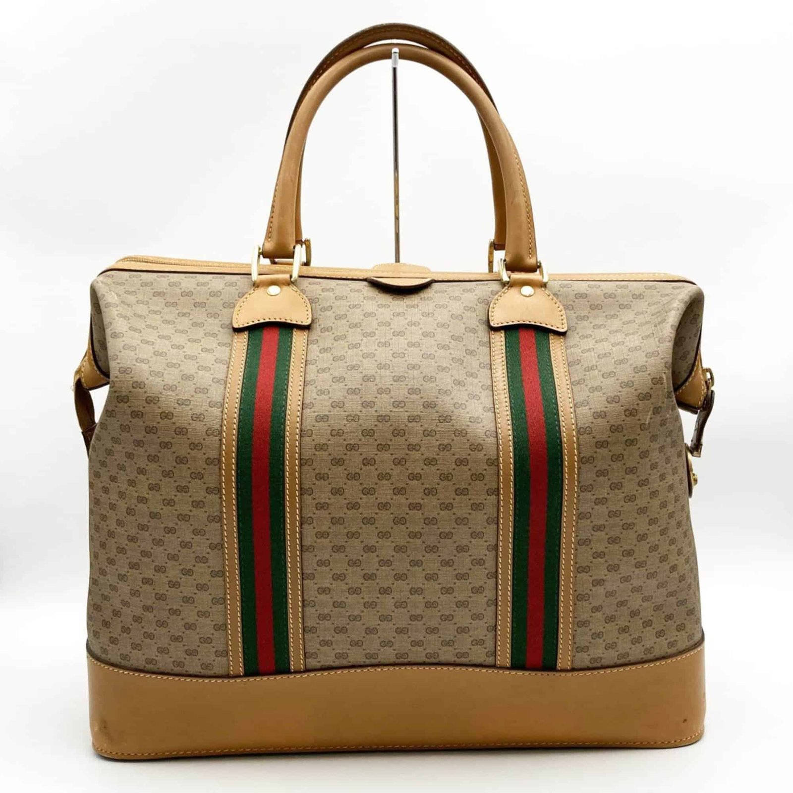Gucci Boston Bag Travel Micro GG Sherry Line Beige Brown PVC Leather Women’s Men’s 012 122