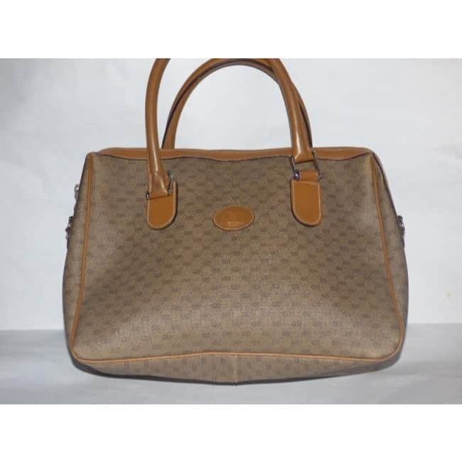 This is a fabulous, mid to late 20th century, vintage, GUCCI, coated canvas & leather, doctor’s satchel or speedy bag style that was treated with kid gloves! It made of coated canvas in browns with the small ‘G’ logo throughout in a darker brown. There are matching camel leather accents throughout the purse- on the footed bottom, piping, trim, opening around the zip top closure, removable strap, and two handles.