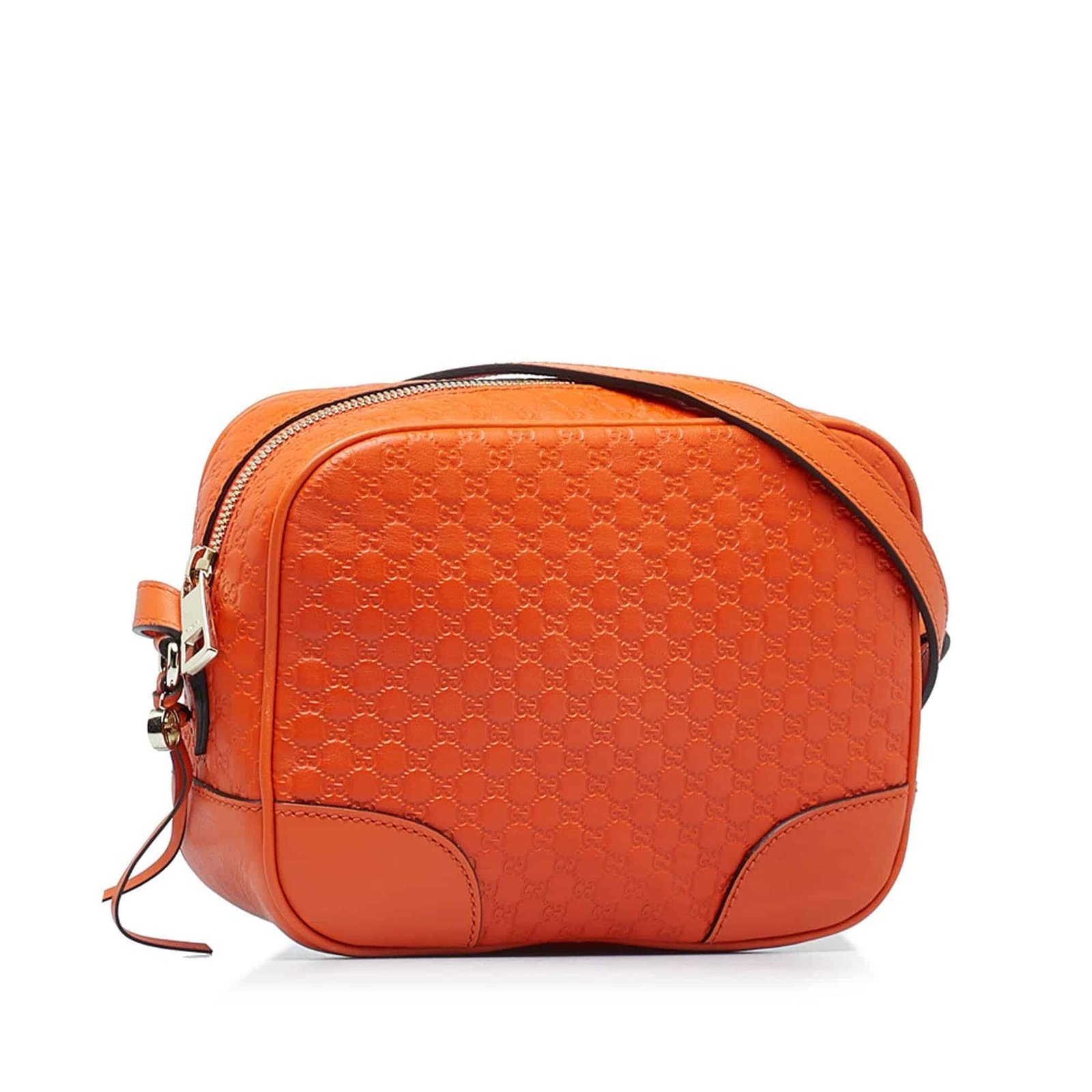 This Bree bag from Gucci is made of orange embossed microguccissima leather. The Bag features silver-tone details, a flat leather shoulder strap, a top zipper closure and an interior slip pocket. The Bag is best across the body.