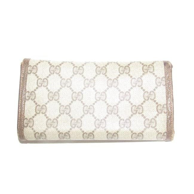 For sale is an early Gucci, brown large G logo print coated canvas and brown leather XL size, tri-fold wallet with a kiss close change purse, checkbook holder, and lots of card slots! This practical and great looking, classic wallet from Gucci is a perfect mate to any purse or style!