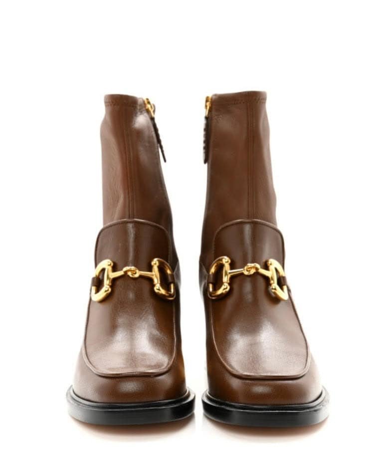 These Gucci shoes offer timeless elegance with their luxurious leather and iconic gold-tone detailing, perfect for elevating any outfit. Whether you’re after brown designer shoes or chic bootie shoes, this exquisite pair combines comfort and sophistication for a polished look.