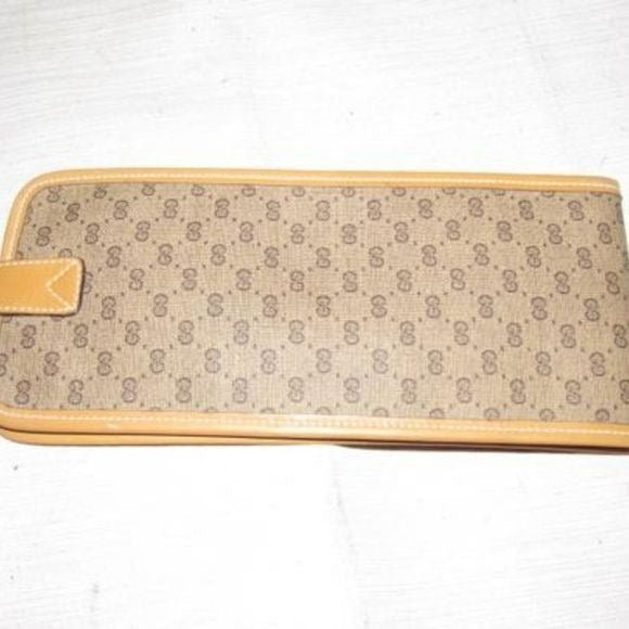 For sale is a vintage, Gucci, brown small G logo coated canvas/leather, unique, snap top, wallet or eyeglass case with top snap closure & gold hardware! The bag is rare style that I think is either a wallet or an eyeglass case. The piece is long and doubles over to have a snap top closure. 9’L x 2’W x 4’H. Please see photos for more details. All measurements are approximate. Item #: 20700859. N0701