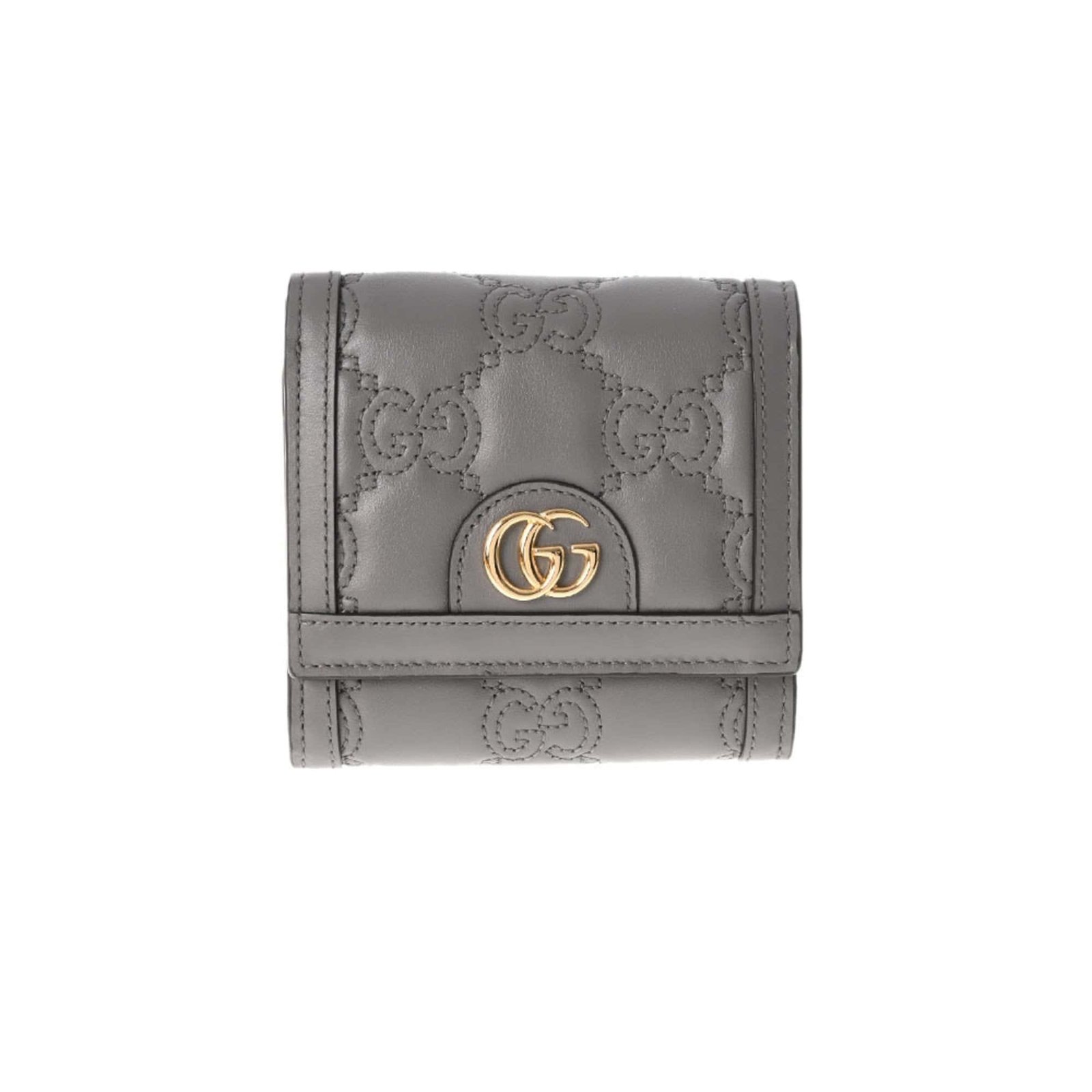 Gucci Card Case GG Matelasse Gray 723799 Women’s Quilted Leather Bifold Wallet