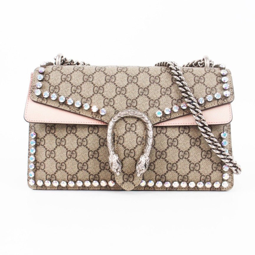 Elevate your style with this Gucci Dionysus Bag. Boasting the iconic GG logo and a stunning monogram pattern, this shoulder Bag is a fashion statement. Its medium size is perfect for everyday use while the silver-tone hardware and metallic strap add a touch of sophistication. Despite minor signs of wear, this Bag remains in very good condition. Don’t miss the chance to add this stunning piece to your collection.
