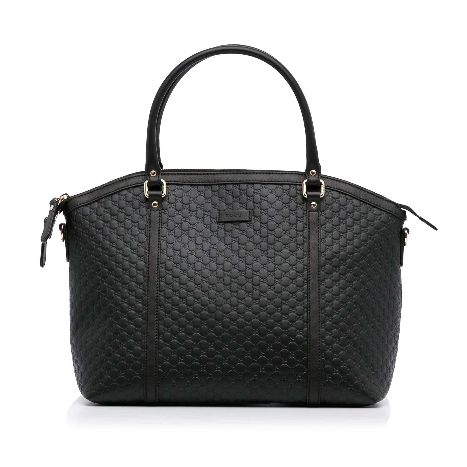 This fresh Gucci Dome in size Large was made of black microguccissima leather. The Bag features rolled leather handles and closes at the top opening via a double zipper. Inside, the Bag has a zippered compartment and open pockets.