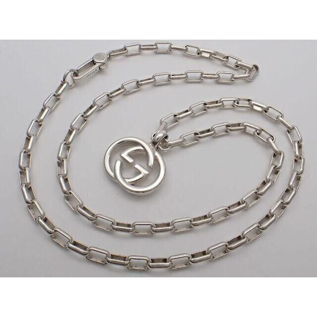 Elevate your style with the iconic Gucci G Logos Link Chain Necklace. This 20-inch silver piece exudes luxury and sophistication, making it a timeless accessory for any outfit. ated and gently used, this necklace comes in its original box, adding to its value and appeal.