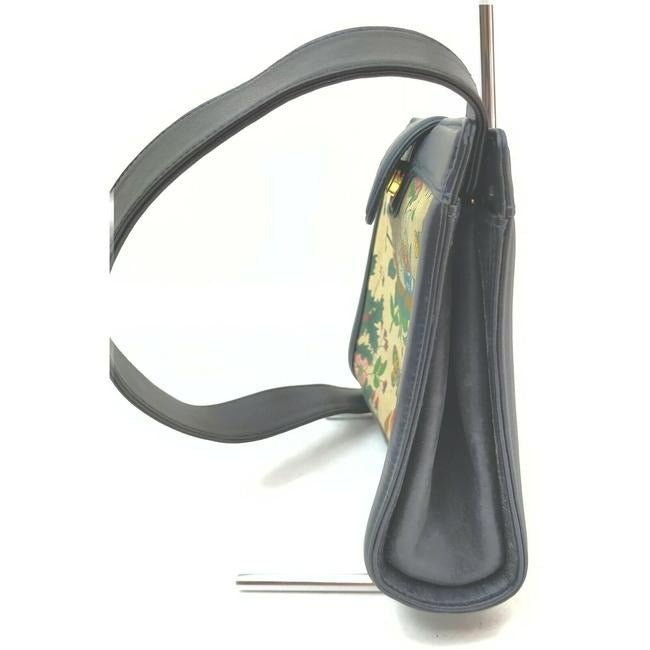 This is a fabulous, rare, GUCCI, leather, top handle, cross body purse/ shoulder bag has a removable strap too become a clutch! It is made of the coveted, Gucci flora floral print fabric with navy leather throughout. It has a unique, fold over top snap closure and hinged sides that allow it to expand. It has an accordion style design that can expand to hold quite a bit! It has hardware accents in gold tone.