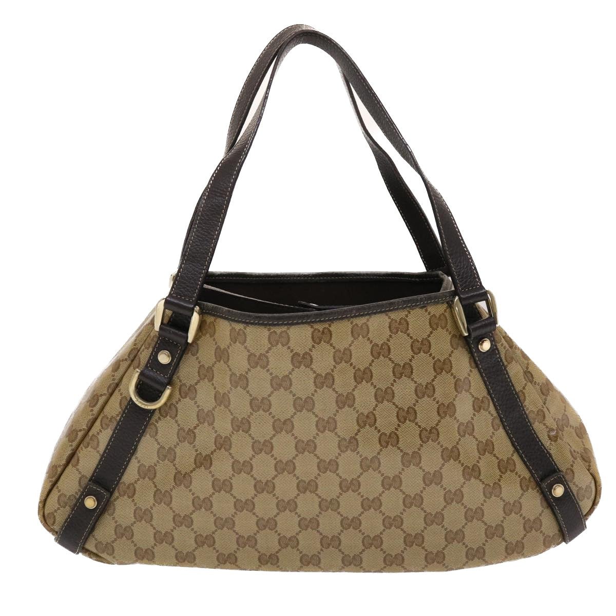 GUCCI GG Canvas Hand Bag Coated Canvas Beige Dark Brown 49071