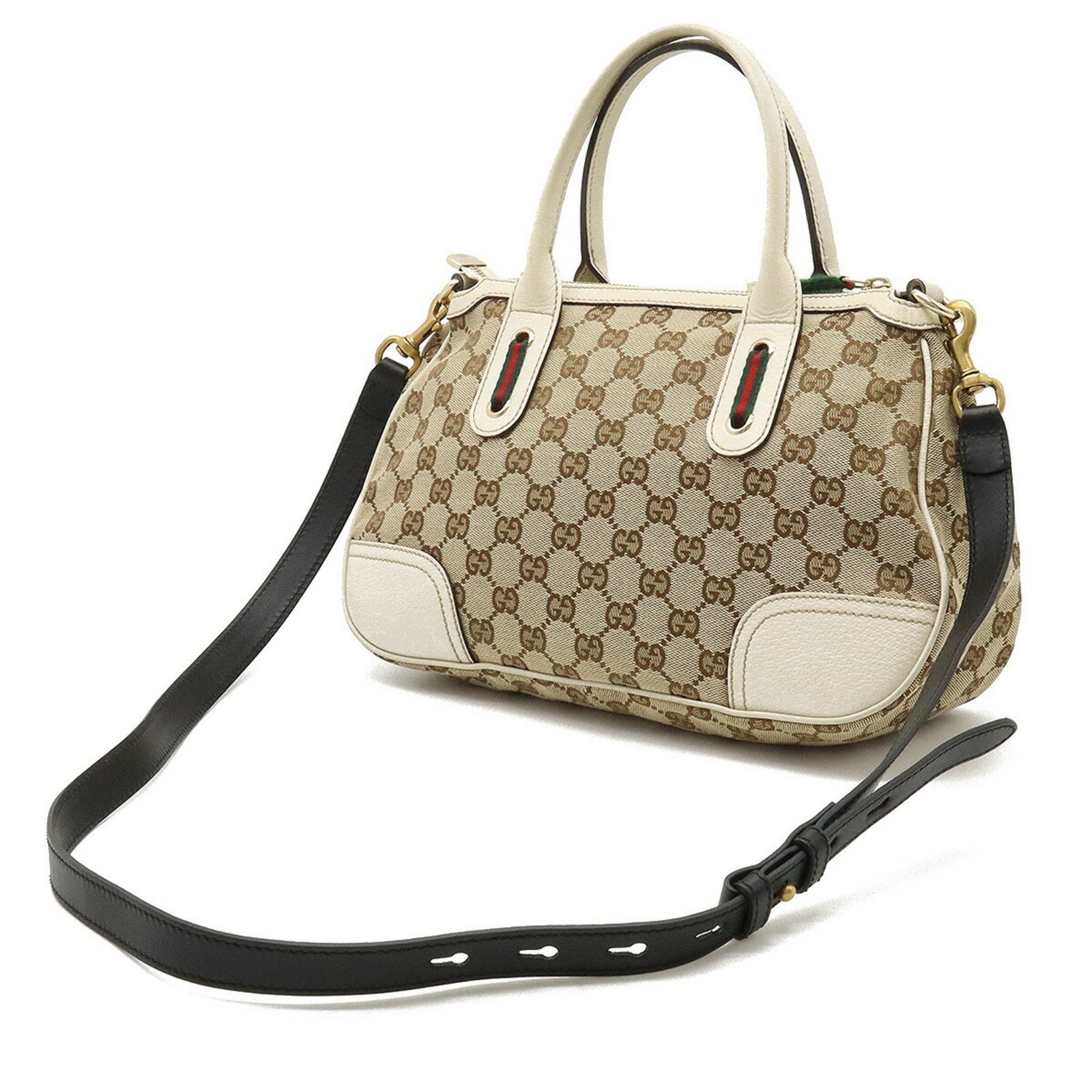 GUCCI GG Canvas Princey Sherry Line Handbag Shoulder Bag Leather Beige Ivory 211977