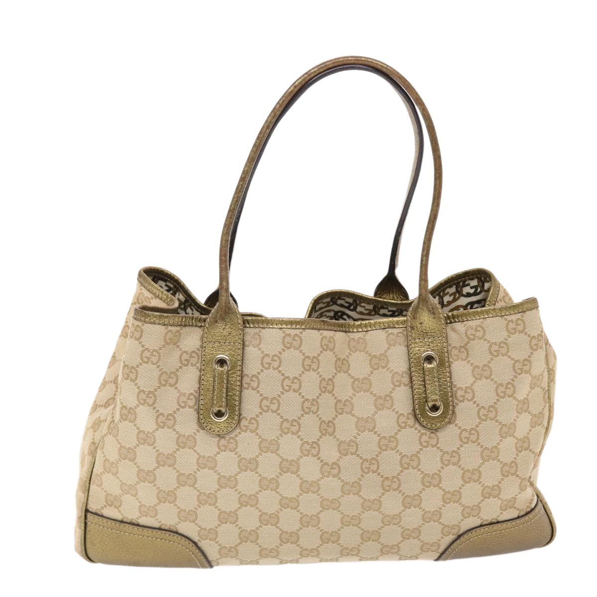 GUCCI GG Canvas Princy Line Tote Bag Leather Gold Tone 163805 tb793