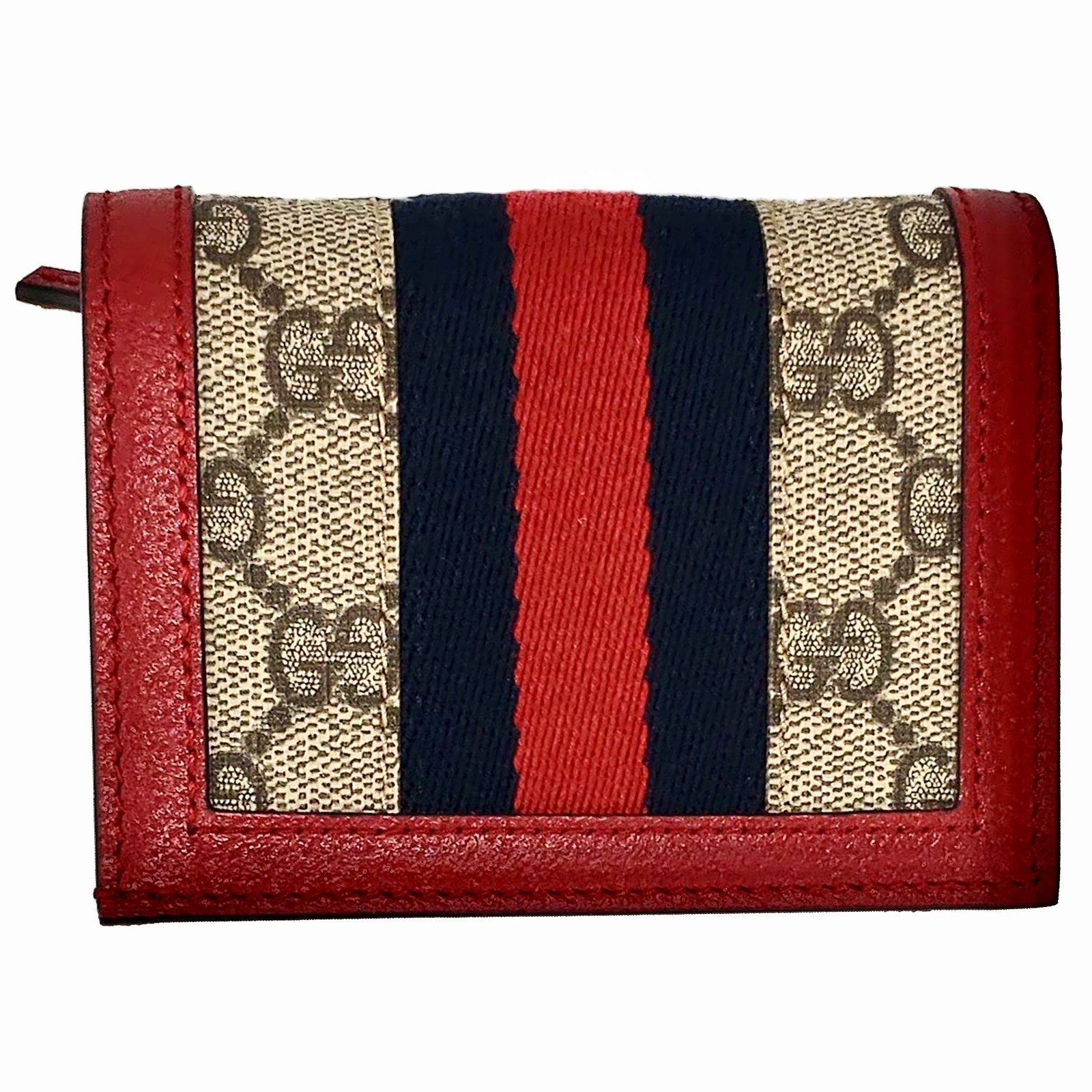 - Beige and Red Queen Margaret GG Canvas Mini Wallet in Red