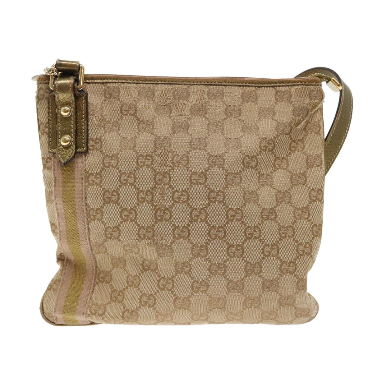 GUCCI GG Canvas Sherry Line Shoulder Bag Beige Gold pink 144388 ki3251