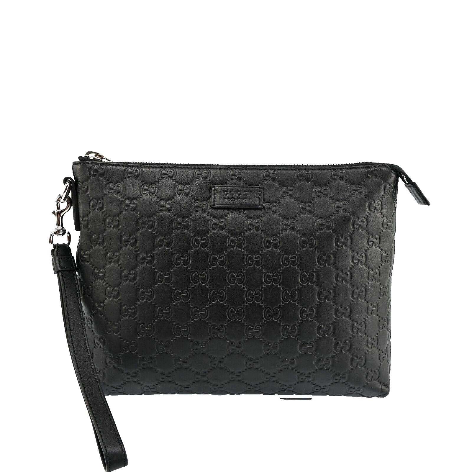 Elevate your style with the iconic Gucci GG Guccissima Clutch Bag Handle Pouch in timeless black. Crafted from premium leather, this sleek accessory features the signature GG monogram pattern for a touch of luxury. The compact design is perfect for carrying essentials while adding a touch of sophistication to any outfit. Whether for a night out or a special occasion, this Gucci clutch is a must-have accessory for the fashion-forward individual.