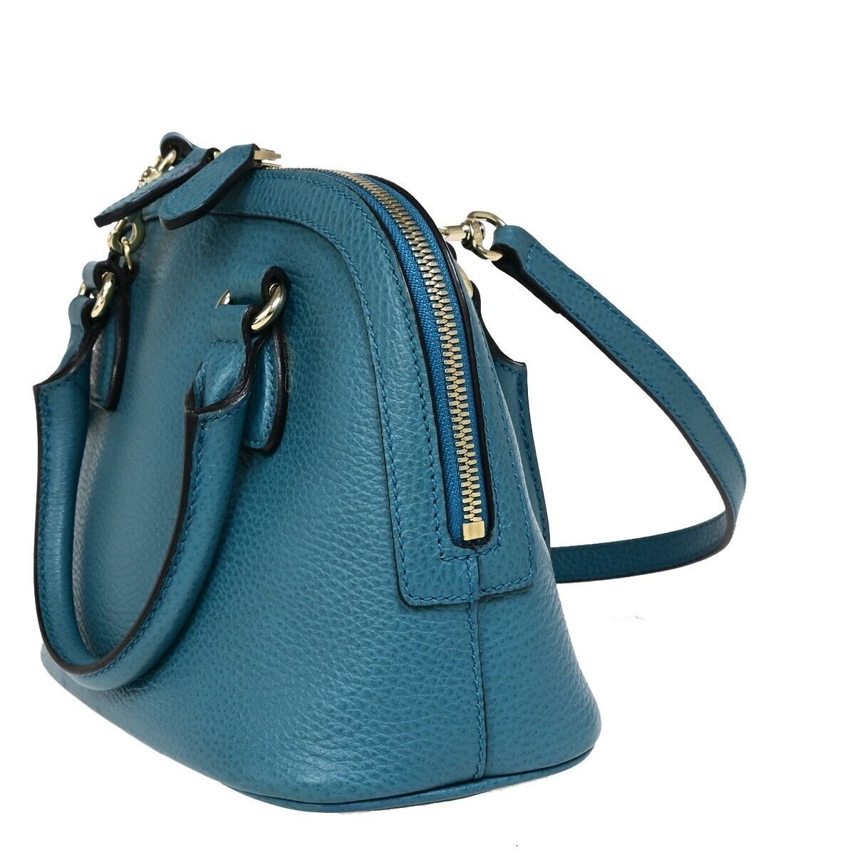 Elevate your style with the Gucci GG Interlocking Charm 2-Way Shoulder Hand Bag in luxurious blue leather with gold-tone hardware. This versatile accessory can be as a shoulder bag or a handbag, perfect for any occasion. The iconic GG charm adds a touch of sophistication, making it a must-have for fashion enthusiasts. Crafted with impeccable attention to detail, this bag seamlessly combines elegance and functionality, making it a timeless addition to your collection.