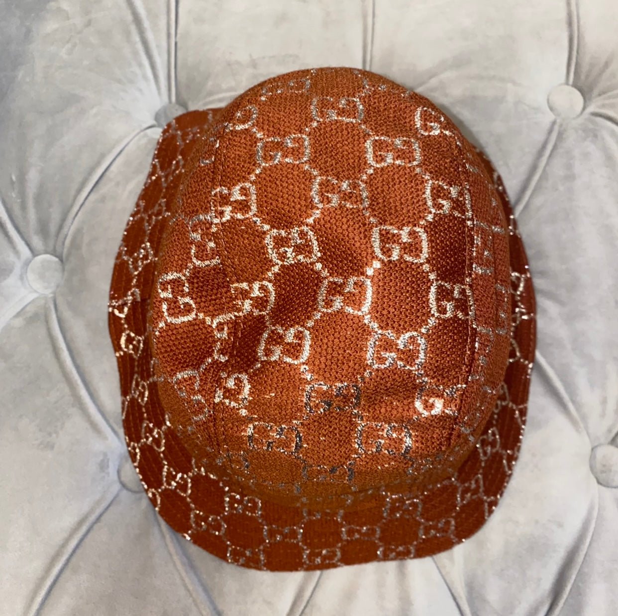 Gucci GG Lamé Bucket Hat in brown continues to be an essential part of Gucci’s design Narrative. Made From A Shiny Lam And Cotton blend, this hat features the GG Motif-A nearly 100-year-old symbol that has been brought back into the forefront Of Gucci’s designs in unexpected ways