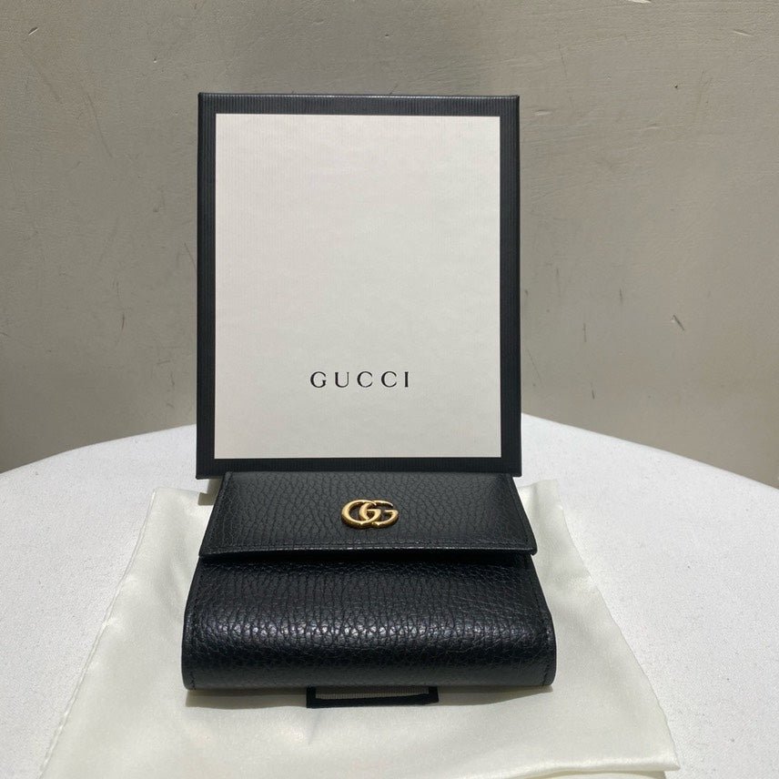 This unused Gucci GG Marmont Black Leather Wallet is a perfect blend of elegance and functionality. Its sophisticated design is crafted in supple black leather, adorned with iconic gold GG hardware. Ideal for those who treasure vintage Gucci bags or are on the lookout for quality used designer handbags, this wallet offers ample space for your essentials.