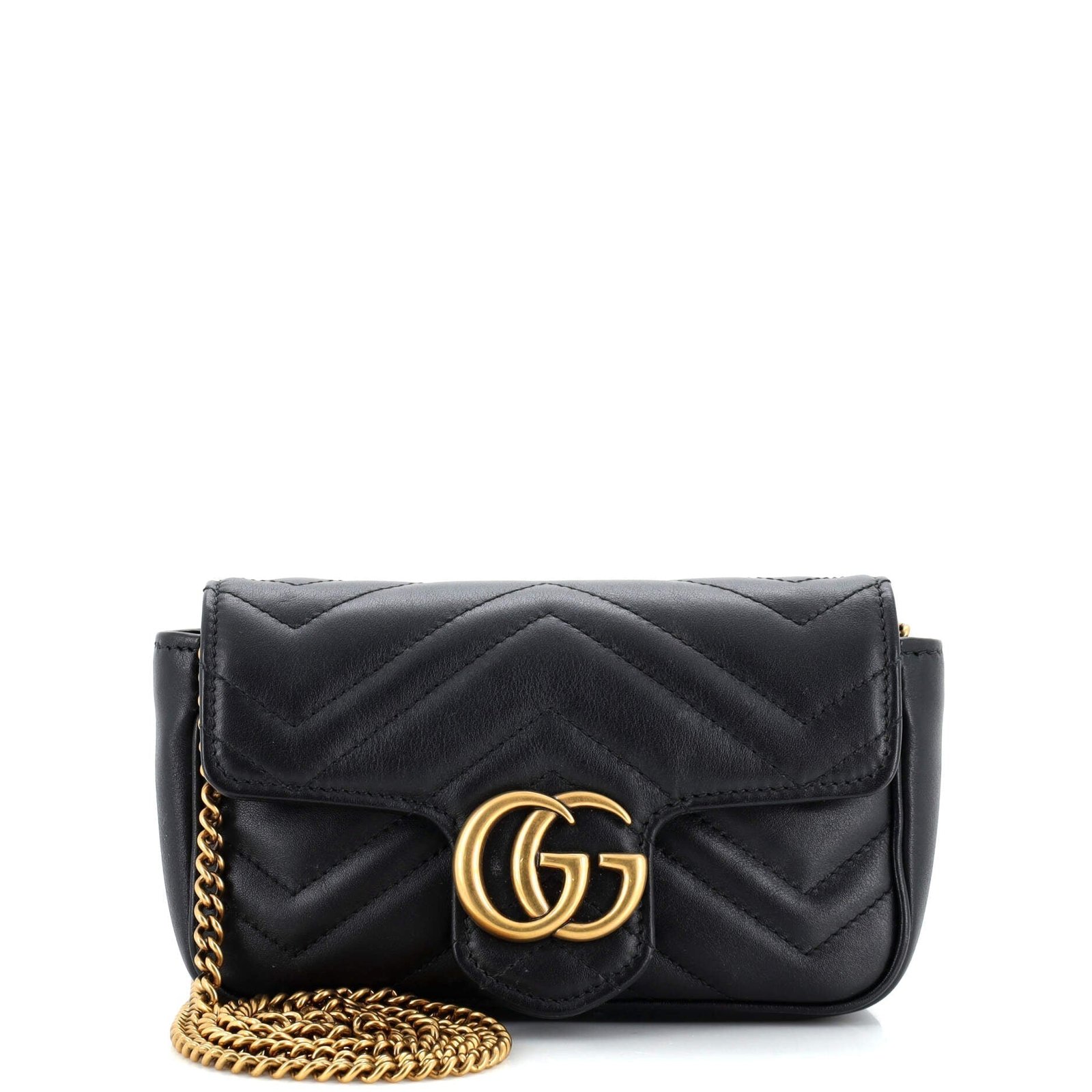 Elevate your style with the iconic Gucci GG Marmont Flap Bag in Super Mini size. Crafted from luxurious matelassé leather, this compact yet chic accessory is perfect for carrying your essentials in style. The signature GG logo and antique gold-tone hardware add a touch of sophistication to any outfit.