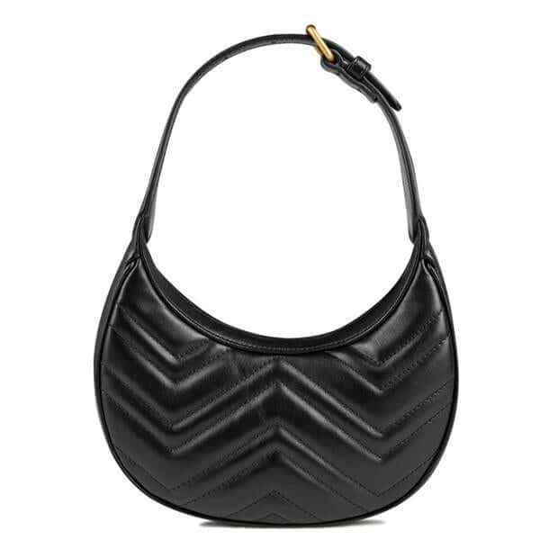 The Gucci GG Marmont Half Moon Shaped Shoulder Bag is a modern and innovative design from the GG Marmont line, characterized by its elegant half-moon shape and curved lines. The bag combines comfort and luxury, making it ideal for both daily use and special occasions, while maintaining the classic DNA of the brand.