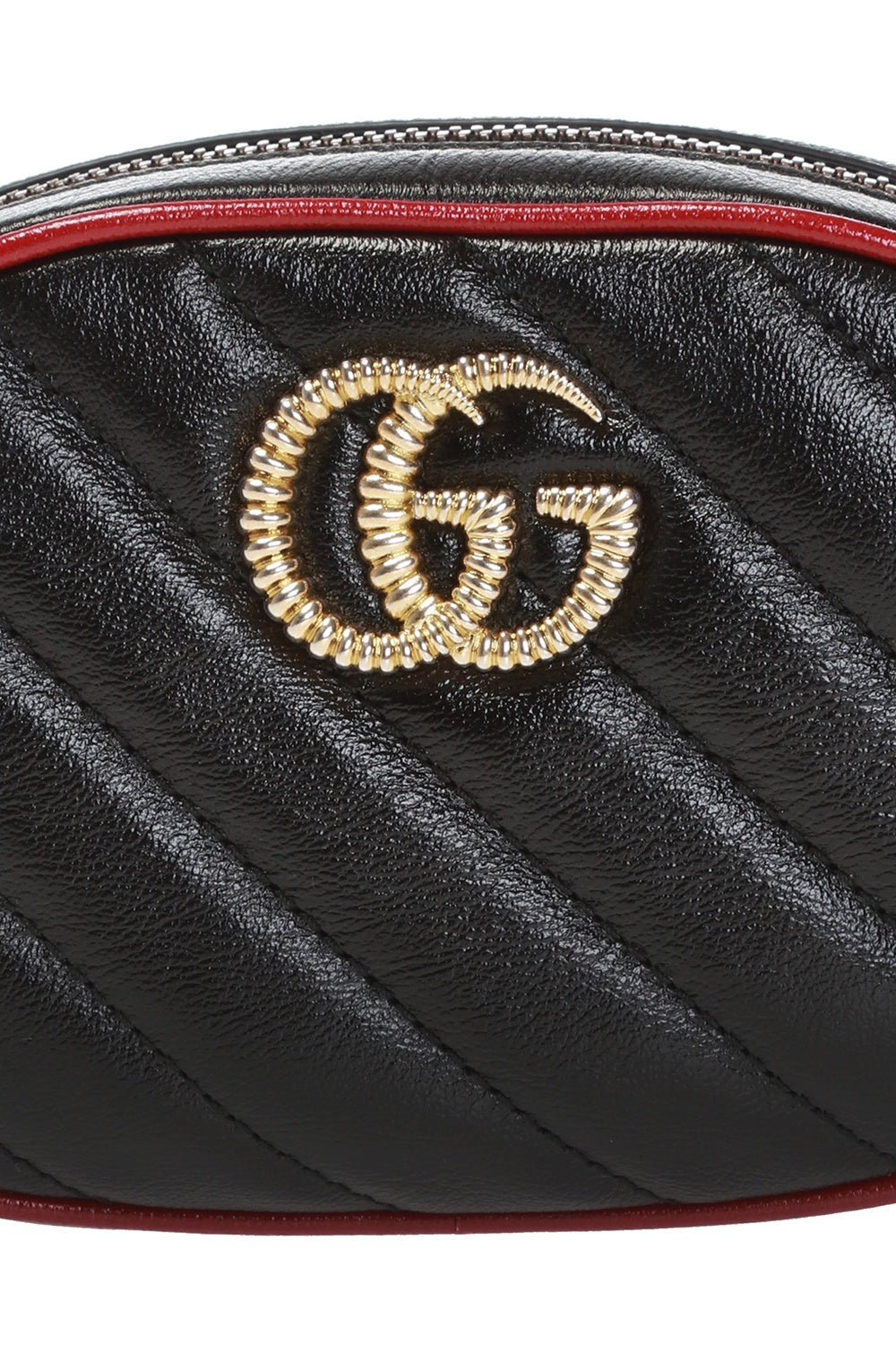 - Gucci GG Marmont Matelasse Leather Belt Bag in Black with Red Trim