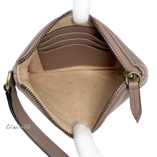 The Gucci GG Marmont Matelassé Leather Clutch with Wristlet Strap in Dusty Rose is a medium sized clutch pouch.