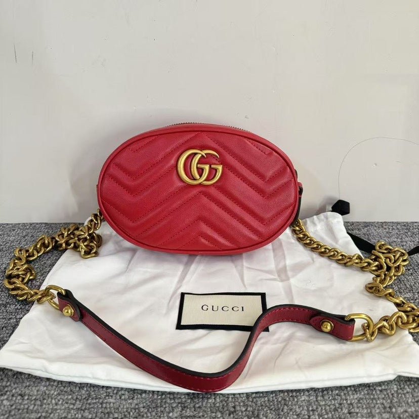 This genuine preloved Gucci GG Marmont Belt Bum Bag is perfect for those who love a vibrant pop of color and luxe design. Crafted in premium red leather with a distinctive chevron pattern, it features gold-tone GG hardware and a stylish chain strap. Ideal for collectors of vintage Gucci bags, this piece stands out among used designer handbags, offering both fashion and practicality.