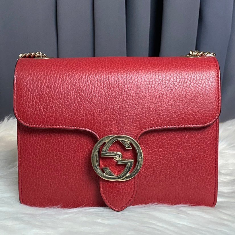 This used Gucci GG Marmont Red Leather Shoulder Bag is a luxurious accessory for those who cherish both elegance and practicality. The classic silhouette is crafted from high-quality red leather, featuring the iconic GG logo in gold hardware, and complemented by a leather strap for comfortable wear. Inside, the bag is lined in matching red leather, offering ample space for all your essentials. Whether you’re a collector or simply love vintage Gucci bags, this piece is a standout among used designer handbags.