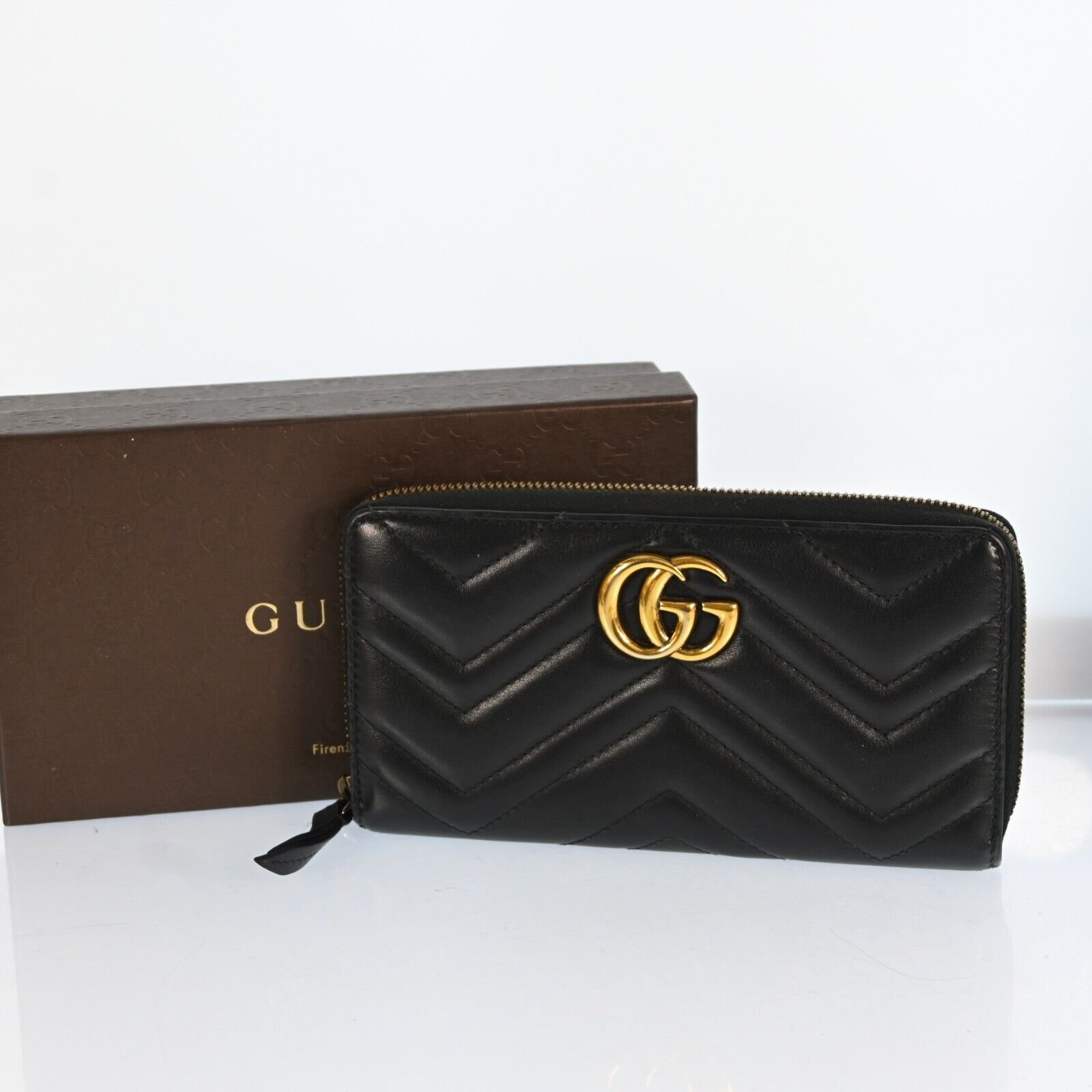 Discover the epitome of luxury with the Auth Gucci GG Marmont Round Zipper Long Wallet in timeless black. Crafted from high-quality leather, this wallet features the iconic GG Marmont quilted design, exuding elegance and sophistication. The round zipper closure ensures your essentials are secure, while the interior compartments offer ample space for cards, cash, and coins. Elevate your style and make a statement with this must-have accessory from Gucci.