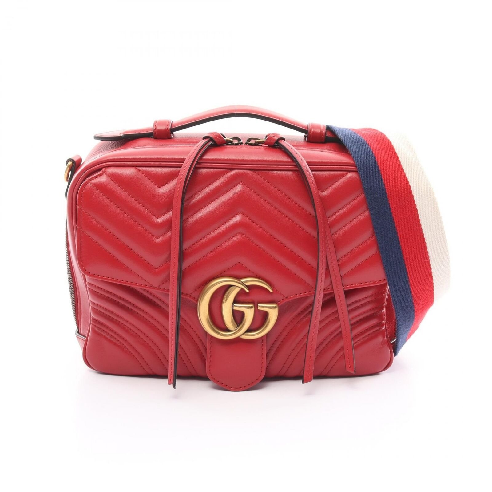 Introducing the Gucci GG Marmont Top Handle Hand Crossbody Shoulder Bag in luxurious red leather. This versatile piece combines elegance and functionality, perfect for the modern fashionista. The iconic GG logo and antique gold-tone hardware add a touch of sophistication to any outfit. With its adjustable strap and top handle, this bag offers multiple styling options for on-the-go convenience. Elevate your accessory game with this Gucci gem.