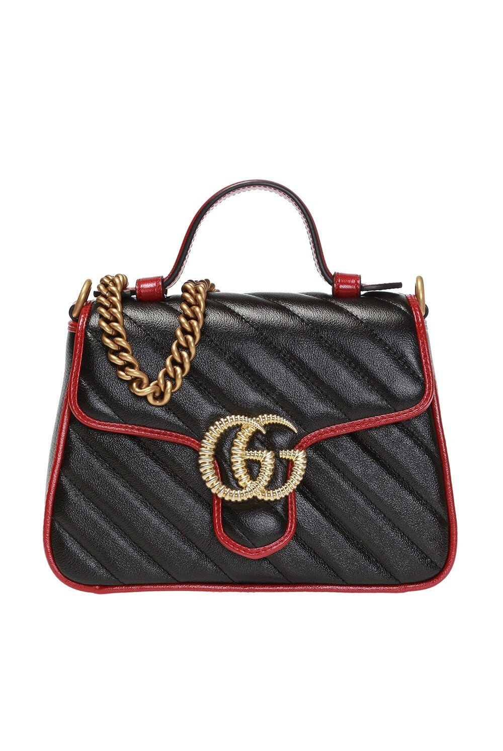 - Gucci GG Marmont Top Handle Shoulder Bag in Black with Red Trim
