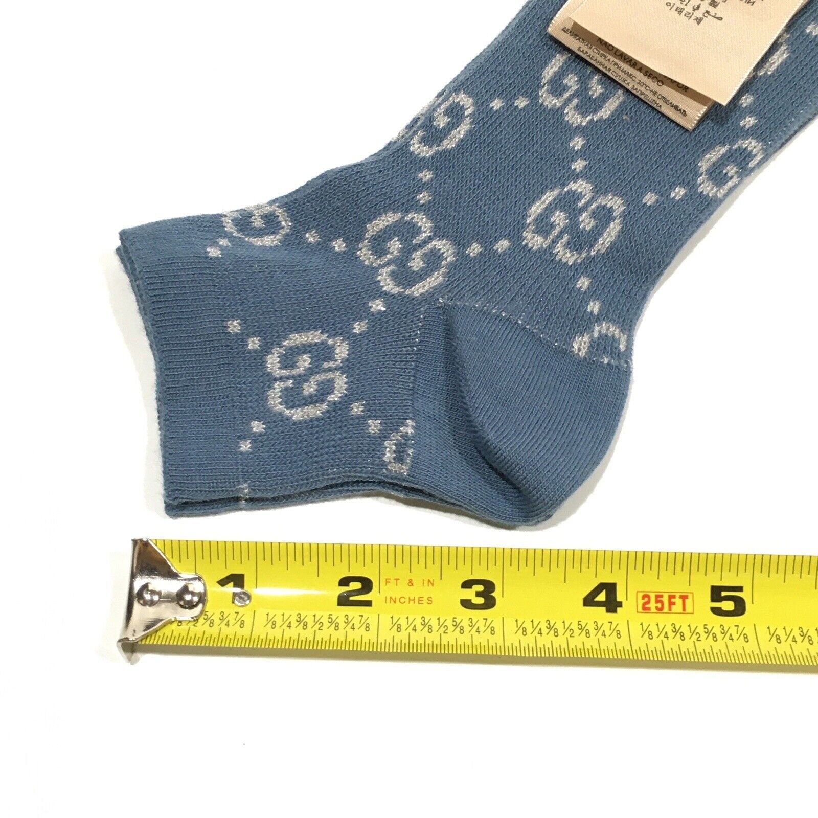 - Gucci GG Monogram Lamé Ankle Socks in Periwinkle Blue