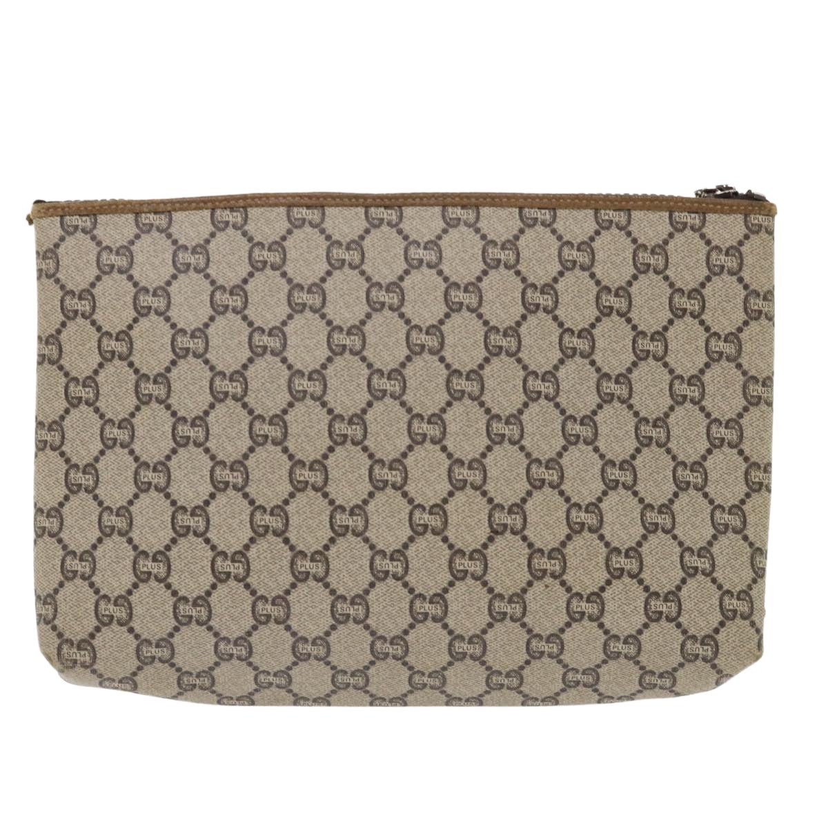 GUCCI GG Plus Canvas Clutch Bag PVC Leather Beige ep1039