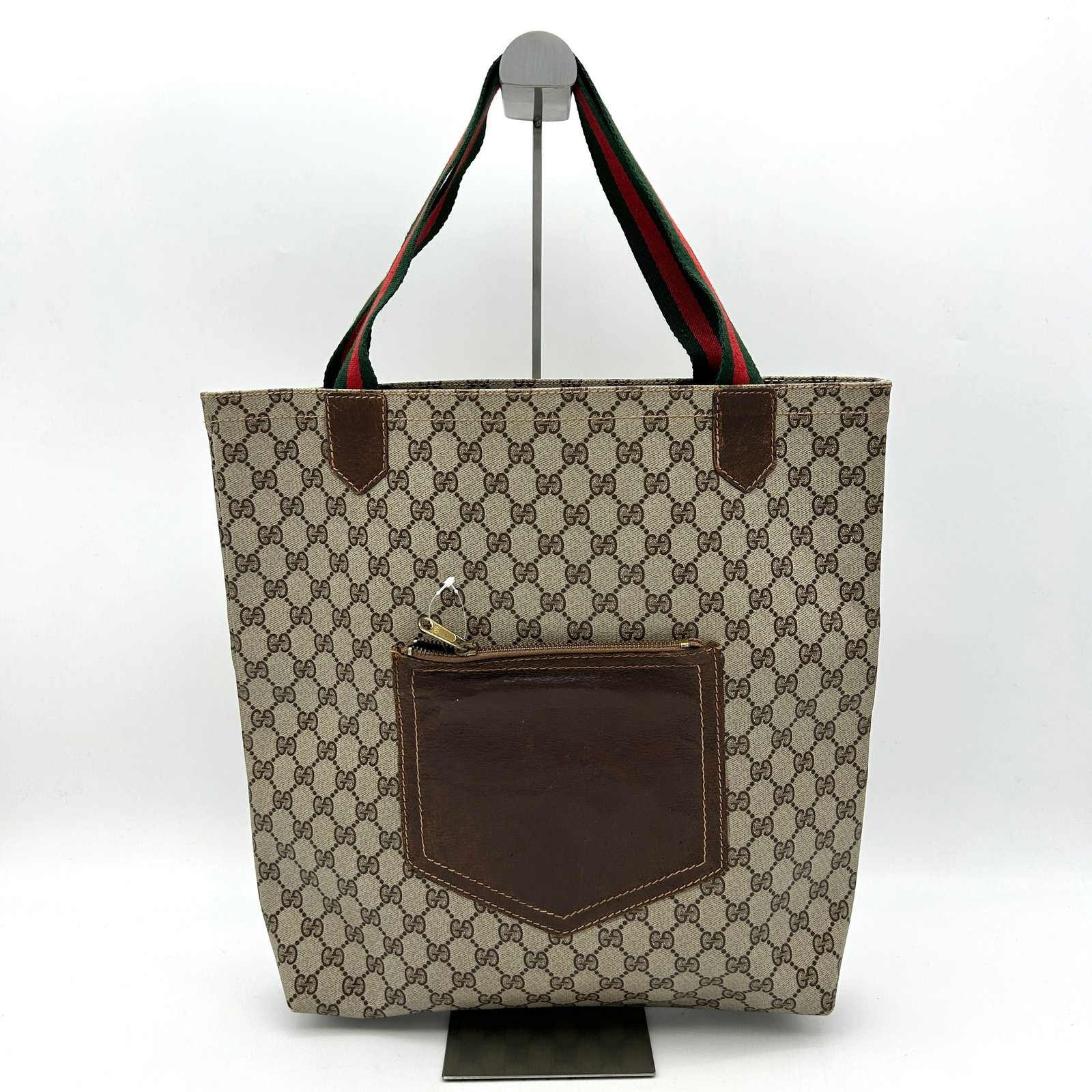 Introducing the Gucci GG Plus Tote Vintage in neutrals—an essential addition for anyone dedicated to collecting vintage Gucci bags. Made from durable coated canvas with the signature GG Plus pattern, this spacious tote bag combines timeless elegance with modern utility. Featuring gold hardware and leather handles in a rich brown, it offers an open-top design ideal for everyday use. This piece’s pristine condition sets it apart as one of the best used designer handbags in the market. Ideal for the fashion-forward individual who appreciates classic sophistication, this bag is a standout among vintage collections.