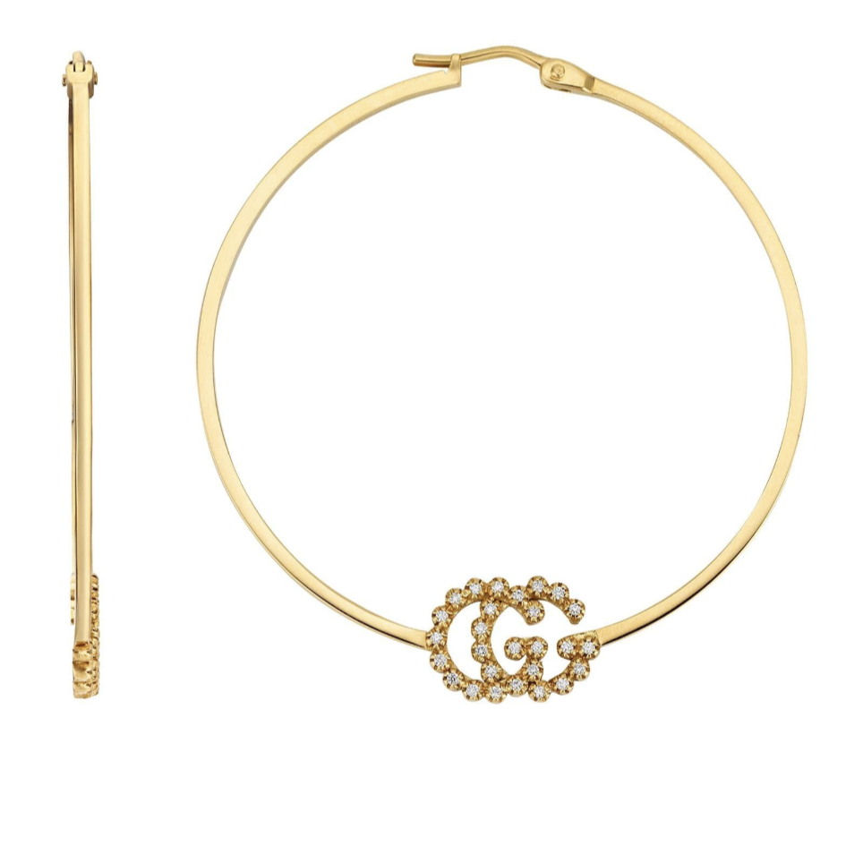 - Gold GG Running Hoop Earrings with Diamonds