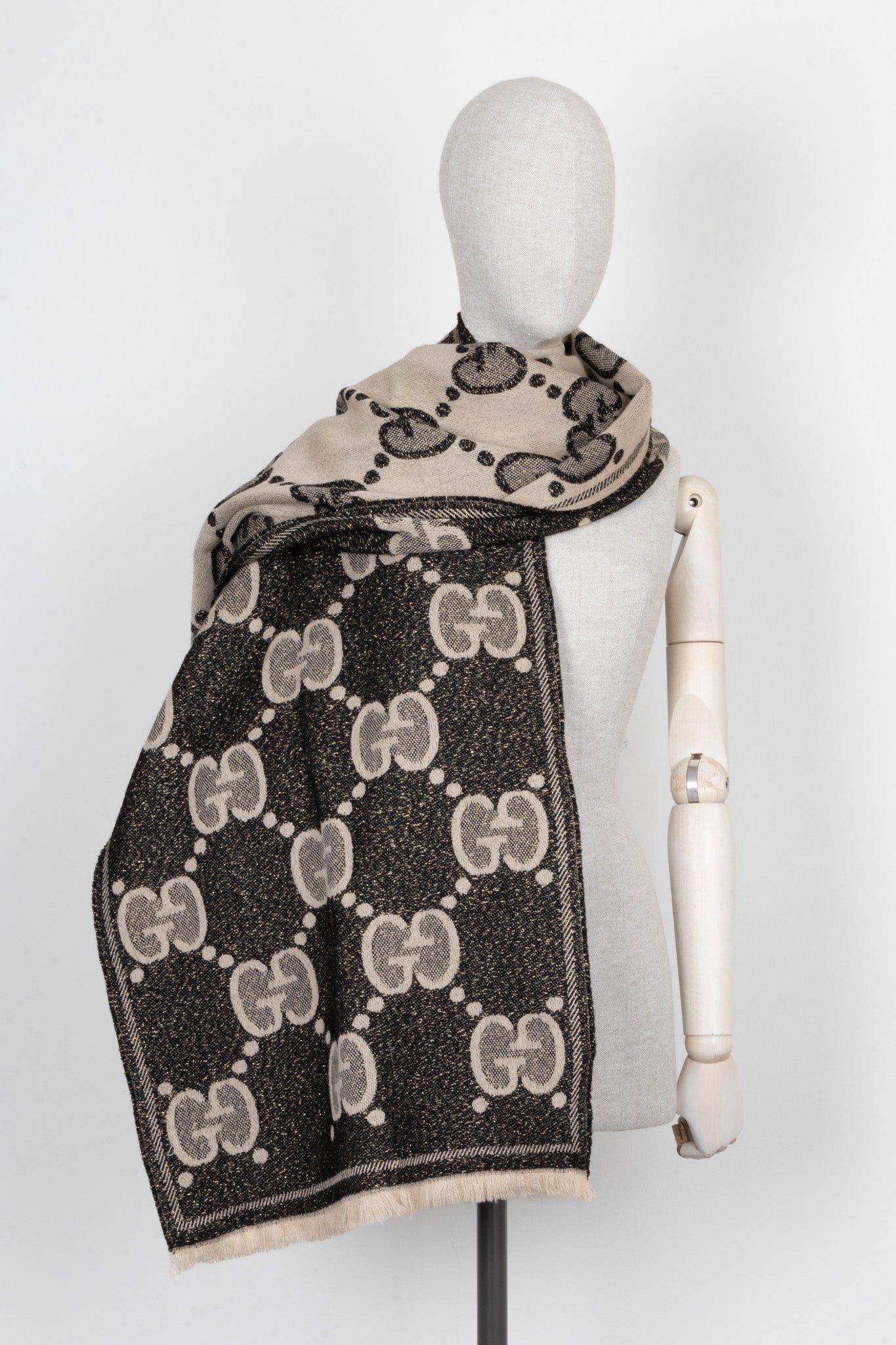 GUCCI GG Scarf Wool Black Gold Beige | AlmaBagz